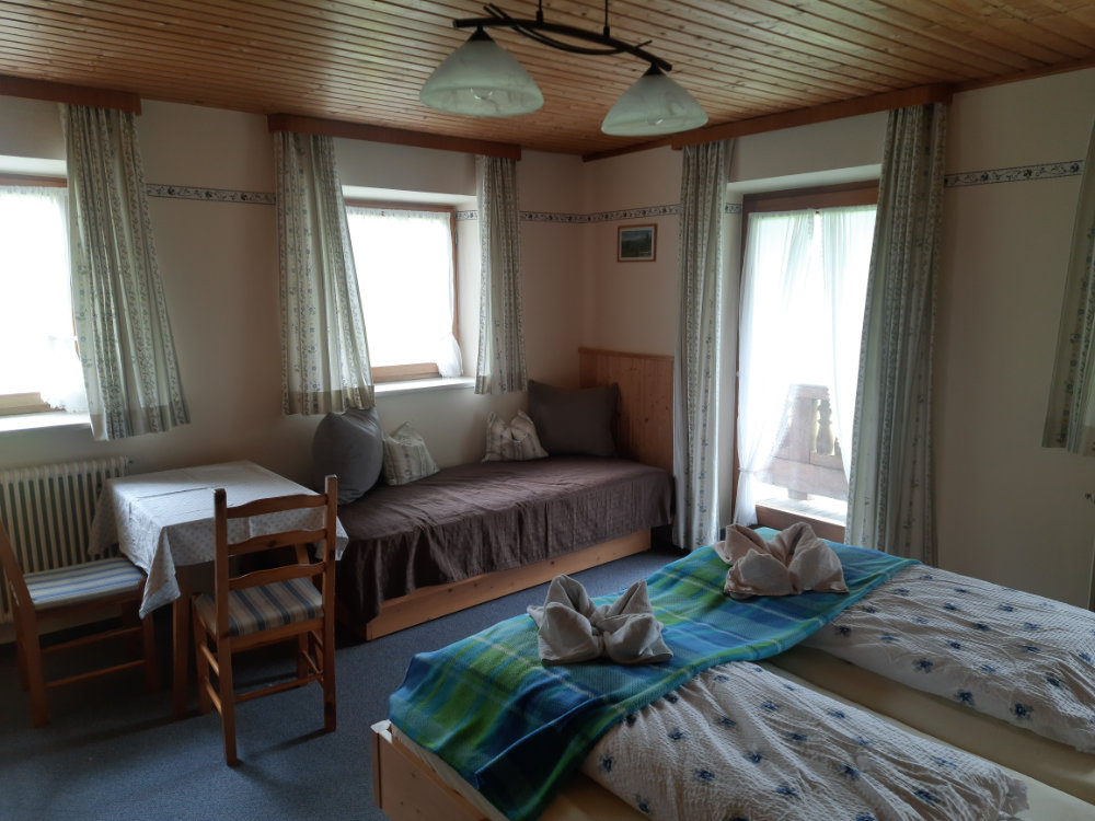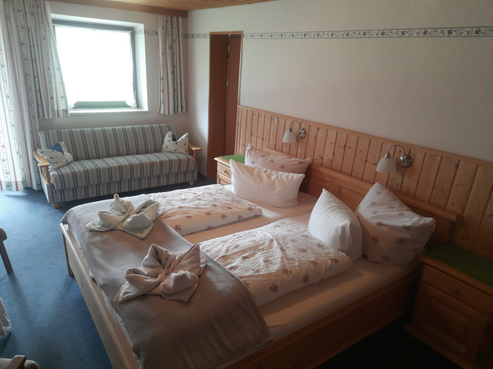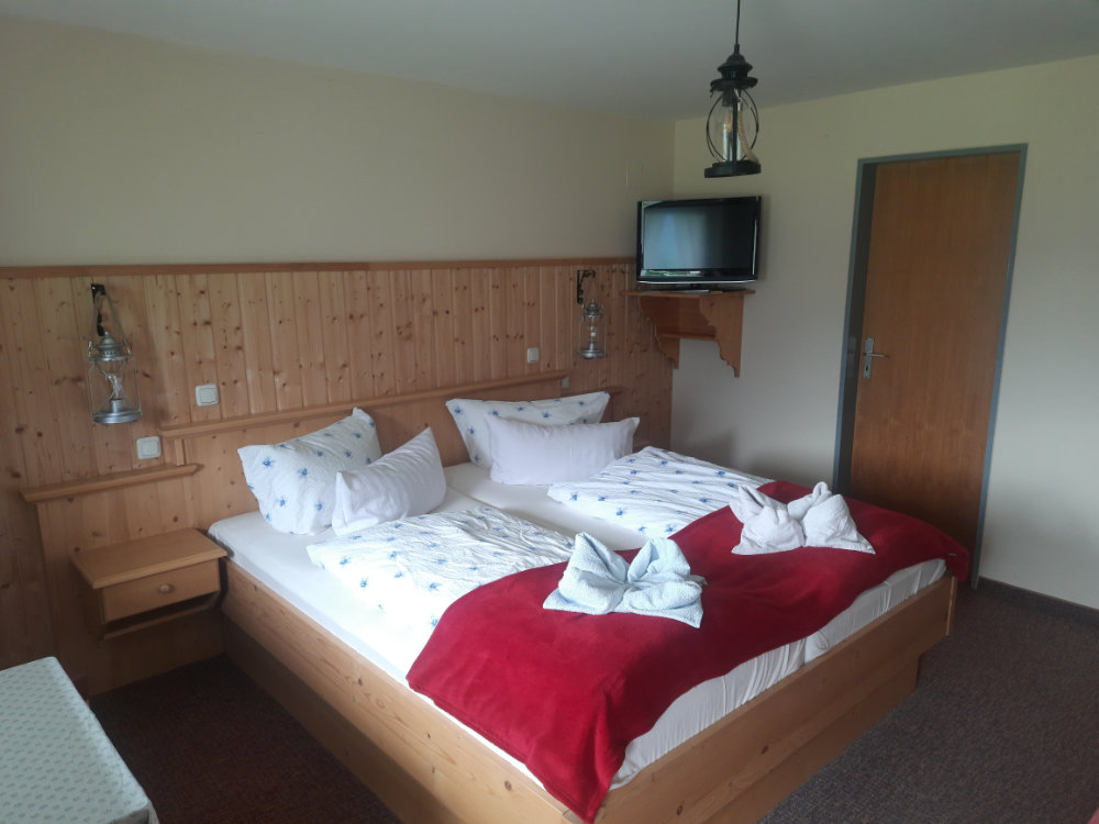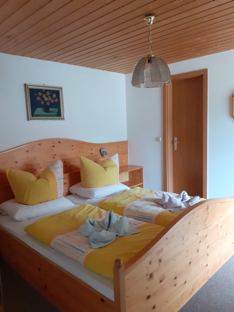 Unsere Wohlfühlzimmer mit Dusche/Wc und Balkon haben einen herrlichen Bergblick. In dem Doppelzimmer ist eine Aufbettung möglich (3 Personen).